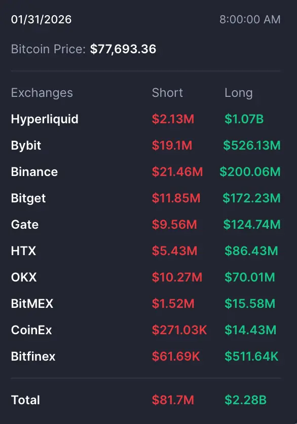 Bitcoin Anjlok ke $76.000 – $1 Miliar Terlikuidasi
